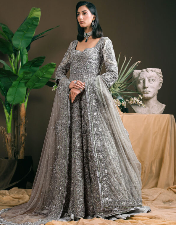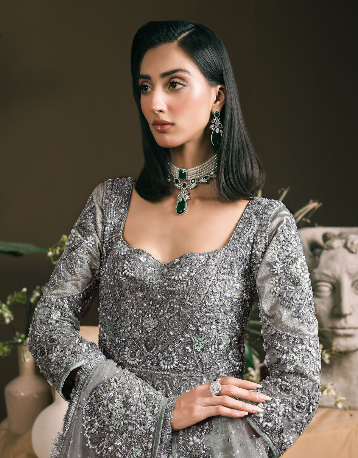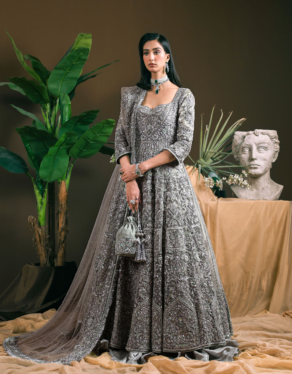Afsaneh:Choli lengha is stunningly designed to make you look amazing. The gorgeous bridal lengha choli delivers a lavish final impression when paired with net duppata in lilac color.
