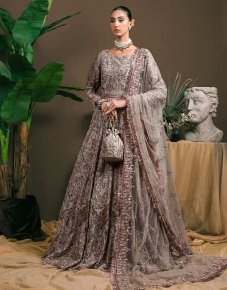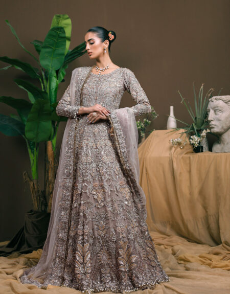A glorious, traditional masterpiece. Haris Ahmed introduces the perfect piece for the Classic bride. This deep red ‘zardozi’ worked shirt with hints of red antique ‘resham’ paired with a traditional heavily worked ‘farshi Gharara’ is exquisite. It is further beautified with a heavily worked net dupatta with beautiful borders and a classic chan created using loaded technique of embroidery. Regality knows no bounds in this grand and magical piece, perfect for the bride looking for a old wordly aura on her big day.